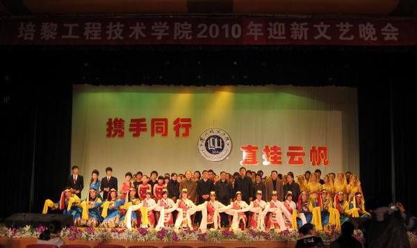 10月29日晚,培黎工程技术学院 “携手同行 直挂云帆”2010年迎新生文艺晚会在培黎校区大学生活动中心隆重举行。校党委副书记王汝锋,校党委常委、副校长杨皖东、梁延堂应邀观看了晚会。学校招生就业处、校团委、学生处、实训中心等部门负责人与该院师生员工1400多人观看了演出。