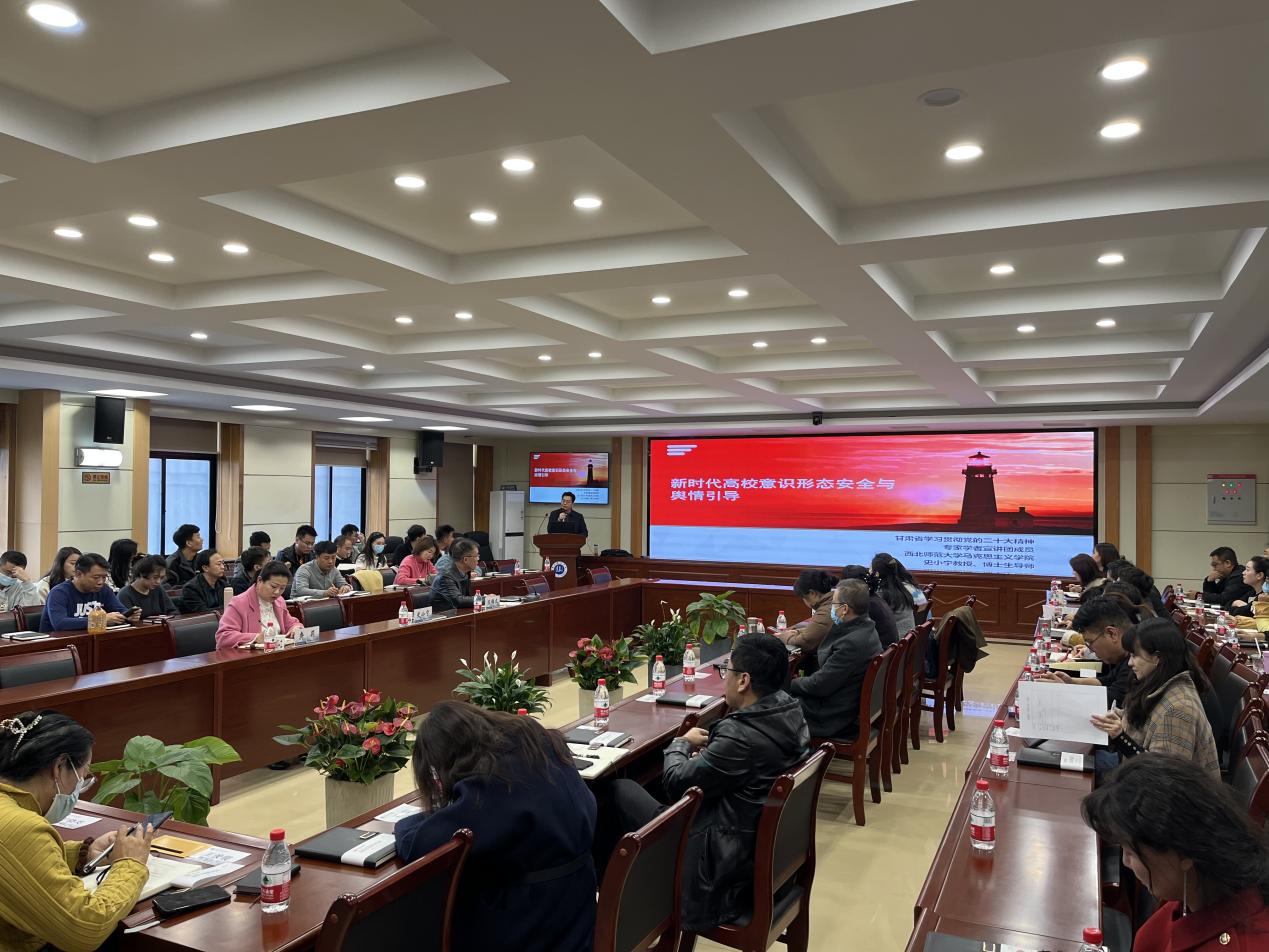根据《bevitor伟德国际19462023年辅导员素质能力提升培训班》培训安排,为进一步提升辅导员素质能力和理论水平,推进伟德辅导员队伍建设向专业化、职业化方向发展,提升辅导员政治站位,党委学生工作部(学生工作处)积极搭建辅导员工作学习交流平台,于11月23日下午邀请西北师范大学党委宣传部副部长、马克思主义学院院长、教授、博士生导师史小宁在校本部知行楼一楼第二会议室为全体专职辅导员作了题为《新时代高校意识形态安全与舆情引导》专题讲座。