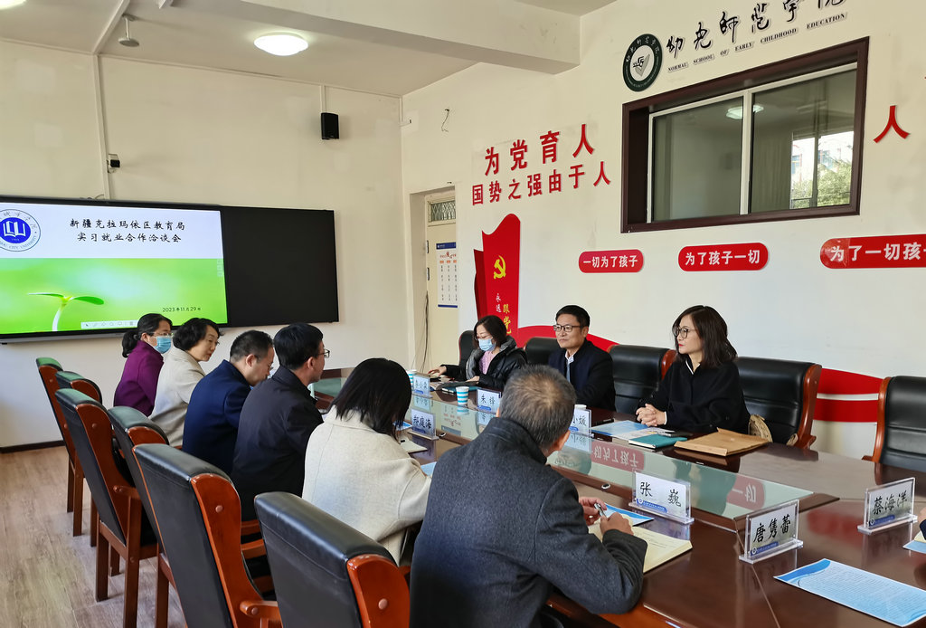为进一步落实“三抓三促”行动,不断推进毕业生就业工作,11月29日,幼儿师范学院邀请新疆克拉玛依市克拉玛依区教育局一行来校考察交流并组织开展师范类专业校园招聘会。学校招生就业处、幼儿师范学院负责人及相关人员参加交流座谈。