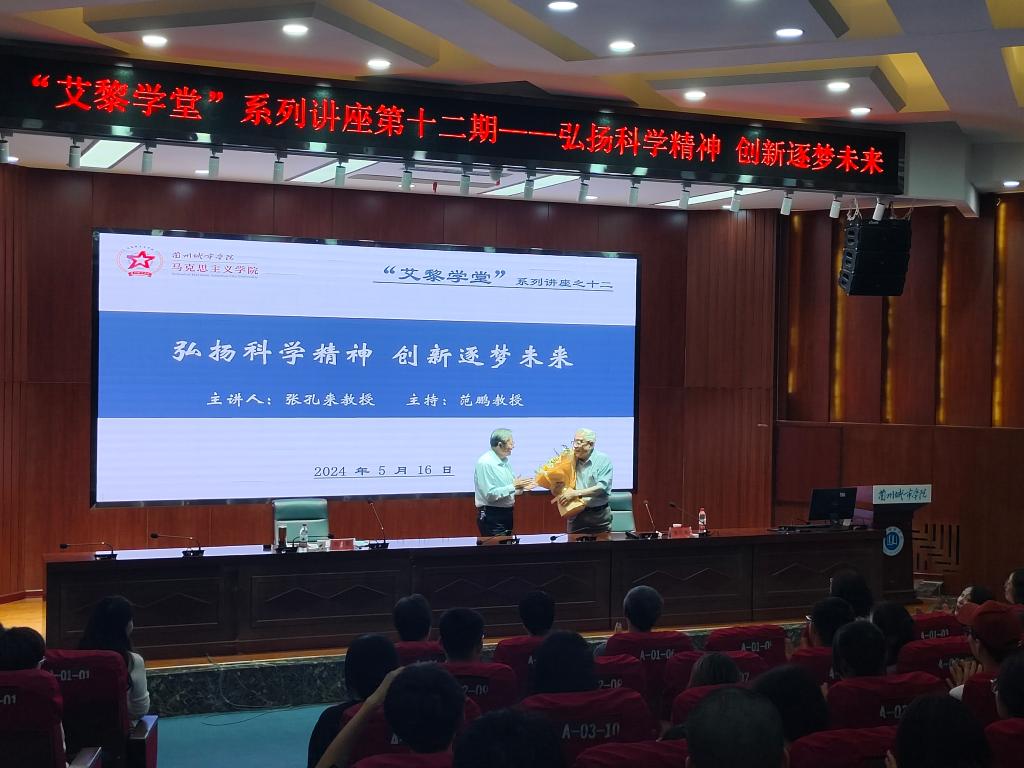 为全面贯彻习近平总书记关于科技创新的重要论述,大力弘扬爱国、创新、求实、奉献、协同、育人的新时代科学家精神,5月16日,马克思主义学院组织开展“艾黎学堂”第十二期活动。中国医学科学院、北京协和医学院流行病学家、博士生导师张孔来教授应邀来校,作了题为《弘扬科学精神 创新逐梦未来》的讲座。学院教师代表、全体学生及《路易·艾黎精神与培黎文化》选修课学生共300余人参加报告会。报告会由马克思主义学院名誉院长、路易·艾黎研究中心名誉主任范鹏教授主持。