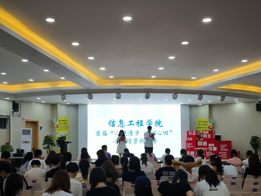 为营造“全社会都行动起来,共促学生心理健康”的浓厚氛围,丰富学院心理健康教育实践活动,提升学生的心理素质,扎实推动心理育人工作走深走实,5月25日晚,信息工程学院“5·25”心理健康文化月系列活动之一的“心境漫步 语润心田”首届心理健康情景剧大赛在校本部大学生活动中心二楼成功举办。学院负责人、相关教师等担任评委。
