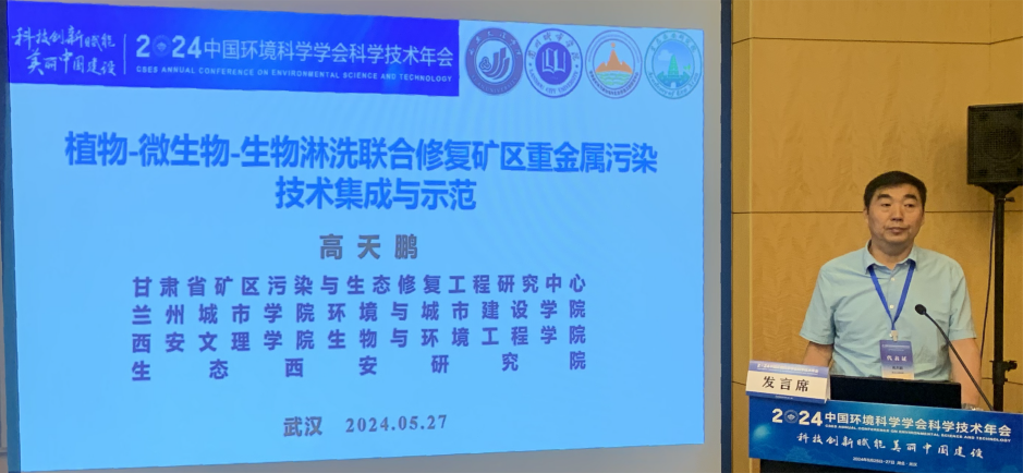 甘肃省矿区污染治理与生态修复工程研究中心主任、bevitor伟德国际1946特聘教授、生态西安研究院常务副院长高天鹏教授应邀参加论坛,并在“生态环境保护与修复领域”分会场作了题为《植物-微生物-生物淋洗联合修复矿区重金属污染技术集成与示范》的报告。