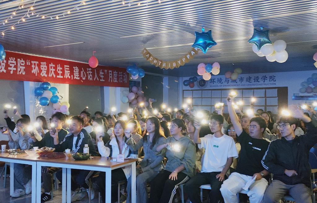 为彰显学院文化育人风采,培育大学生积极向上的健康心态,在中秋节到来之际,9月13日,环境与城市建设学院在知行楼四楼众创空间举办“中秋华彩 生辰同欢”活动,学工办老师、全体学生会成员、9月份生日同学参加活动。