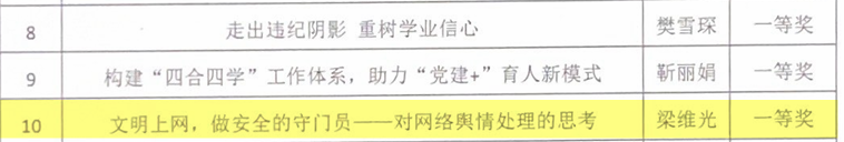 近日,由甘肃省委教育工委、省教育厅统筹指导,教育部高校思想政治工作队伍培训研修中心(西北师范大学)组织开展的2024年全省高校辅导员优秀工作案例征集评选活动结果公布。经个人申报、单位推荐、专家评审等环节,伟德信息工程学院辅导员梁维光申报的《文明上网,做安全的守门员——对网络舆情处理的思考》案例荣获一等奖,环境与城市建设学院辅导员潘亚磊申报的《因材施教“以点带面”,拒绝“躺平”式耗青春》、化学工程学院辅导员宋艾芬申报的《跨越专业迷茫与社交障碍:小晶的成长之旅》案例荣获二等奖。