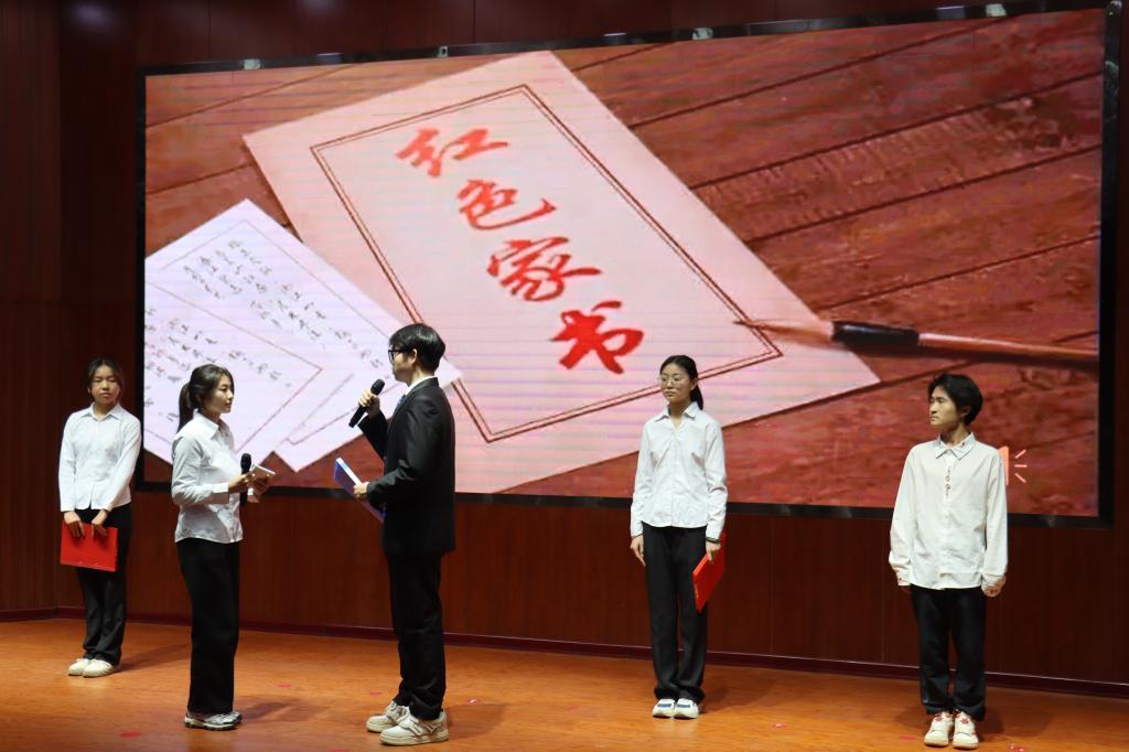 比赛现场,选手们通过诵读、演绎、讲述和演唱等丰富多样的形式,生动展现了革命先辈们的英勇事迹和崇高精神。在红色家书诵读环节,选手们深情朗诵一封封饱含热血与信念的红色家书,将革命先辈对家国的热爱、对理想的执着展现得淋漓尽致。红色家书则以小品、情景剧等生动形式展现家书背后的故事,将历史场景鲜活地呈现在观众眼前。红色歌曲演唱环节,学生演唱的《我爱你中国》用激昂的歌声传递正能量,表达出对祖国的热爱与敬仰,传递出奋发向上的热血力量。