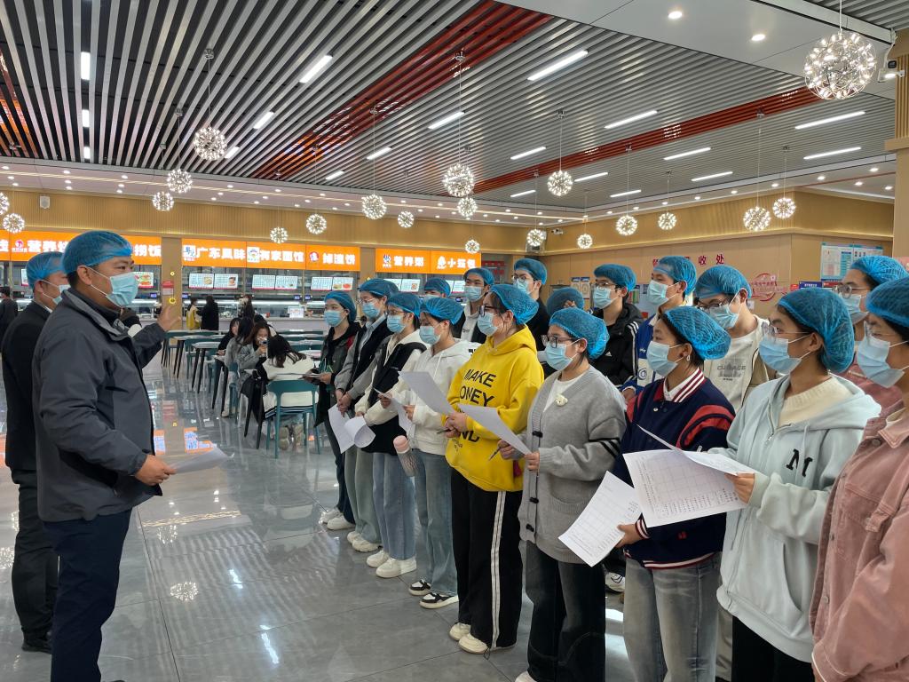 学生代表实地查验了食堂运营状况,从食材的采购、储存、加工制作和餐具消毒等各个环节进行了全面、细致、深入地了解。在饮食服务中心工作人员的耐心介绍下,同学们仔细核验供应商资质,确认每一批次食材溯源信息,确保所有食材来源正规可靠;在仓库,同学们检查食材摆放是否遵循先进先出原则,有无过期变质隐患;在加工间,同学们全程紧盯菜品从初加工到烹饪出锅的每一步环节,监督操作人员是否严格遵守卫生规范;在清洗消毒区,同学们检查消毒设备运行参数,随机抽检餐具洁净度与细菌残留情况。食堂全体工作人员一丝不苟的工作态度和严格规范的操作流程,得到了同学们的认可及好评。