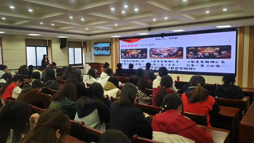 为认真贯彻落实习近平总书记关于教育的重要论述,进一步弘扬教育家精神,厚植师范生教育情怀,增强青年学子投身教育事业的责任感与使命感,3月27日下午,教育学院举办“弘扬教育家精神 培育新时代良师”系列活动之“追名师 学名师 做良师”读书观影活动表彰大会。校团委相关负责人、教育学院党政领导班子成员及师生代表出席活动,特邀教育部中小学领航名师张艳平教授担任专家评委并作主题分享。