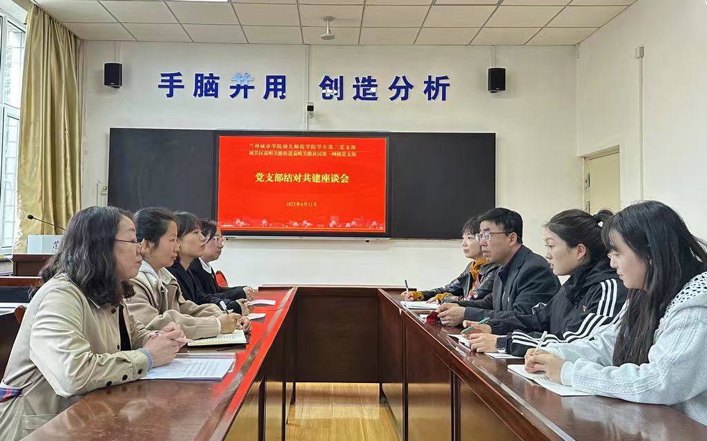 学生第二党支部与七里河区特殊教育联合党支部结对共建,定期在七里河区鸣创康复中心开展活动,通过教科研合作、创新创业项目孵化等形式开展合作,推动党建业务融合发展。学生第三党支部与城关区嘉峪关路社区第一网格党支部结对共建,推进学院与社区融合共建、优势互补,在就业创业、志愿服务等方面开展广泛合作,共同打造党建引领下的基层治理和服务新品牌。