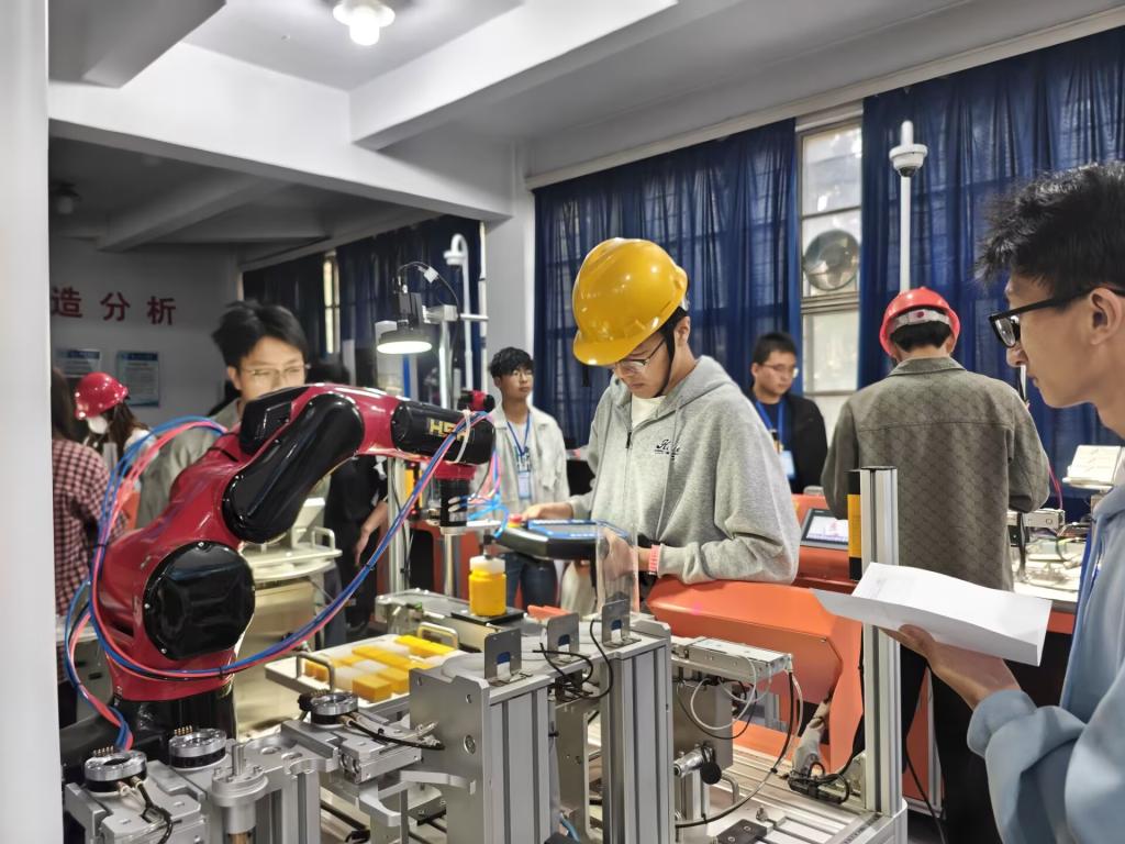 赛事共吸引来自全校机械设计制造及其自动化、智能制造工程等8个专业的42支参赛队伍同场竞技。竞赛内容紧密对接行业技术前沿,设置工业机器人末端夹具安装调试、工业协作机器人编程控制、数字孪生系统建模三大核心模块,全面考察选手的工程实践能力与团队协作水平。在实际操作竞赛环节,参赛选手规范操作智能设备,精准完成程序编写与系统调试,充分展现了扎实的专业功底和创新思维。经专家评审组严格评审,GS-青禾新力等5支优胜队伍脱颖而出,将代表学校参加甘肃省2025年“华中数控杯”省级竞赛。