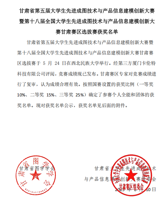 近日,由甘肃省教育厅主办、西北民族大学承办的第十八届全国大学生先进成图技术与产品信息建模创新大赛甘肃赛区选拔赛落下帷幕。