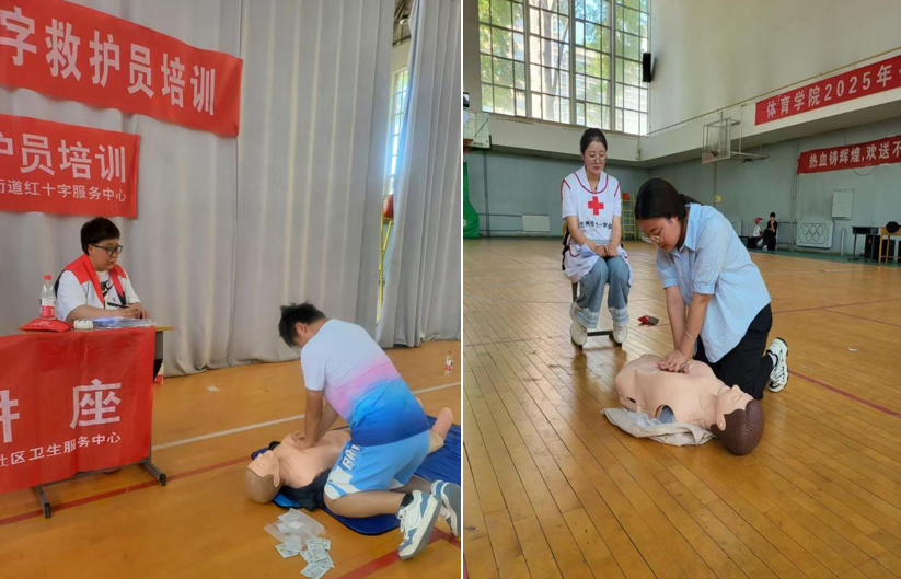 红十字会专业讲师团队分组围绕心肺复苏(CPR)、创伤包扎、骨折固定、气道异物梗阻处理等急救技能展开系统教学,强调"黄金4分钟"的重要性。力求每个步骤、每个动作都标准规范。参训师生也在模拟人教具上反复练习胸外按压节奏,互相配合完成头部包扎、手臂悬吊等实操项目,课堂互动氛围热烈。