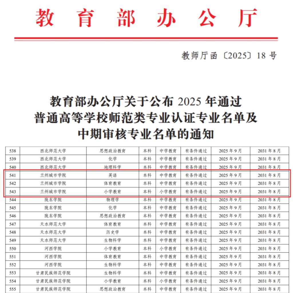 近日,教育部办公厅发布《关于公布2025年通过普通高等学校师范类专业认证专业名单及中期审核专业名单的通知》(教师厅函〔2025〕18号),伟德英语、体育教育、小学教育三个师范类专业通过教育部师范类专业第二级认证,认证结论有效期为六年(2025年9月至2031年8月)。