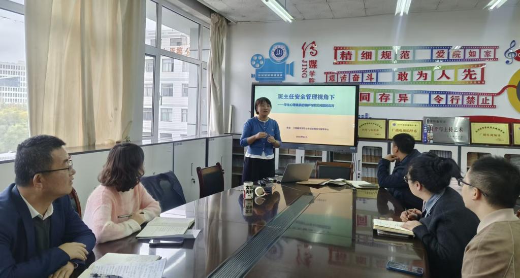 培训会上,主讲教师从三个维度系统讲解了心理健康教育工作的核心要点:一是心理健康工作的基本原则与有效沟通技巧,帮助班主任建立良好的师生沟通渠道;二是大学生常见心理问题的识别方法与干预措施,提升班主任及时发现和应对心理危机的能力;三是从心理健康角度强调校园安全工作的重要性,指导班主任筑牢校园心理安全防线。