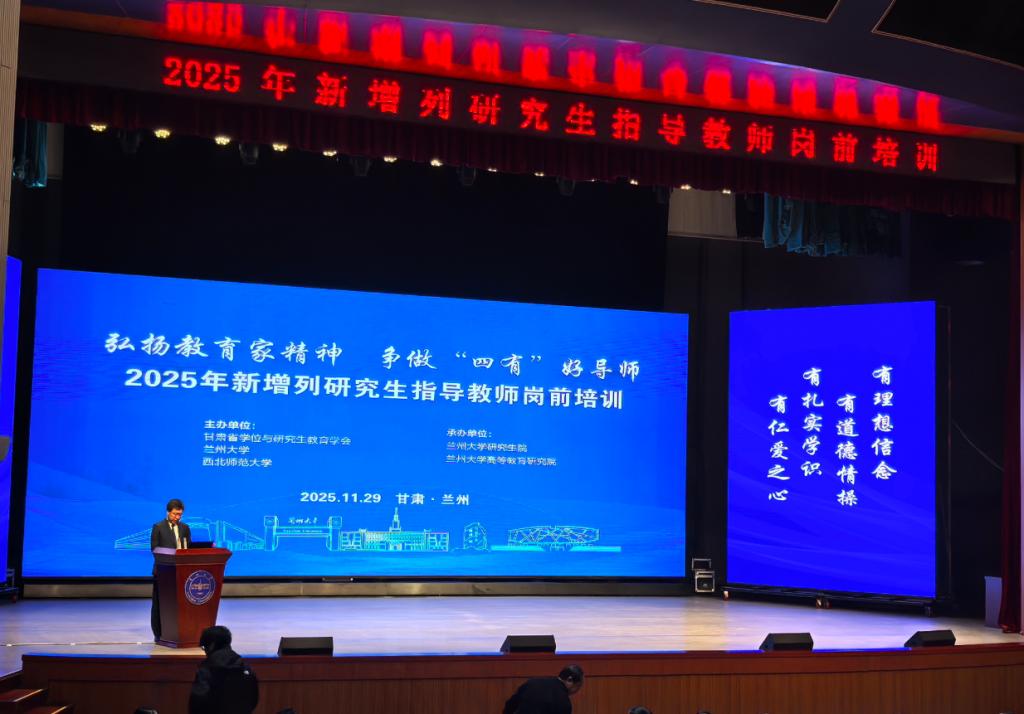 为深入贯彻落实教育强国战略,提升研究生导师育人能力, 1129日,学校组织新聘任研究生导师赴兰州大学参加由甘肃省学位与研究生教育学会、兰州大学、西北师范大学联合主办的“弘扬教育家精神 争做‘四有'好导师” ——2025年新增列研究生指导教师岗前培训。
