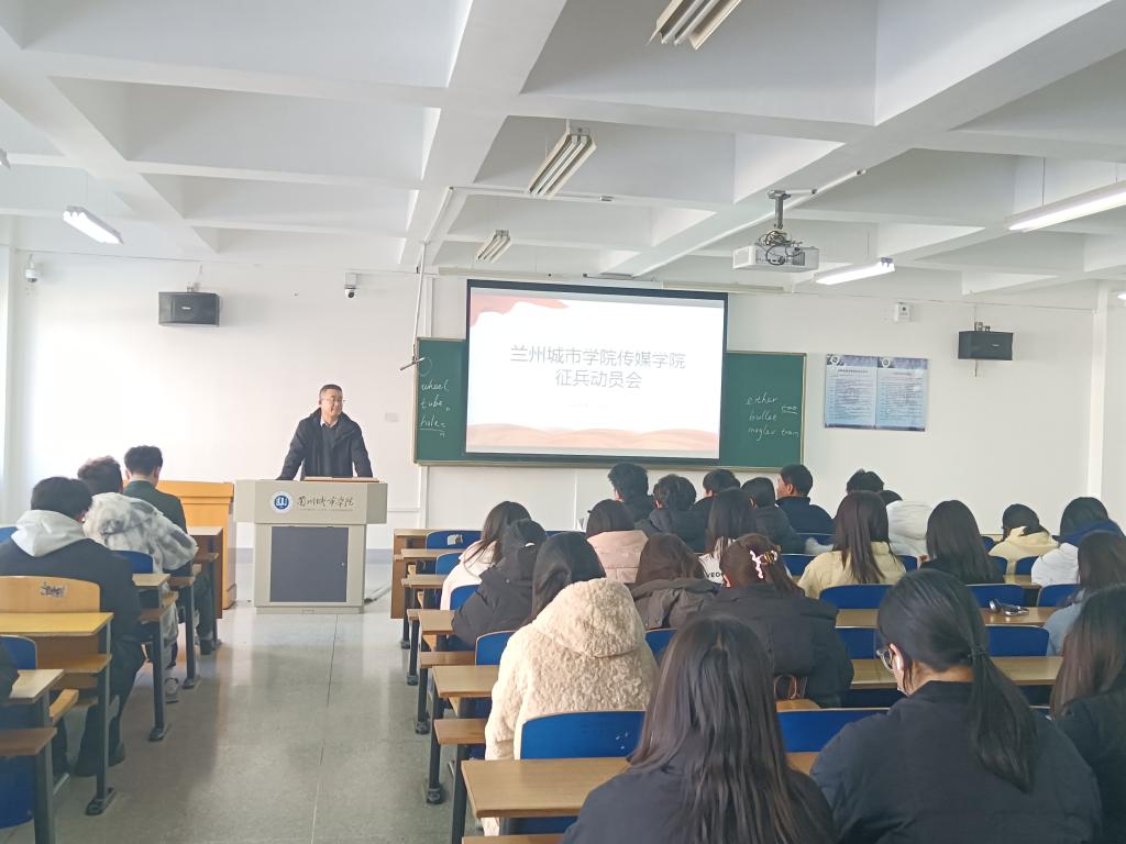 为扎实做好2026年春季大学生征兵工作,激发学子参军报国热情,12月23日,传媒学院在知行楼4315教室组织召开征兵入伍动员会。学院毕业班学生参加会议。
