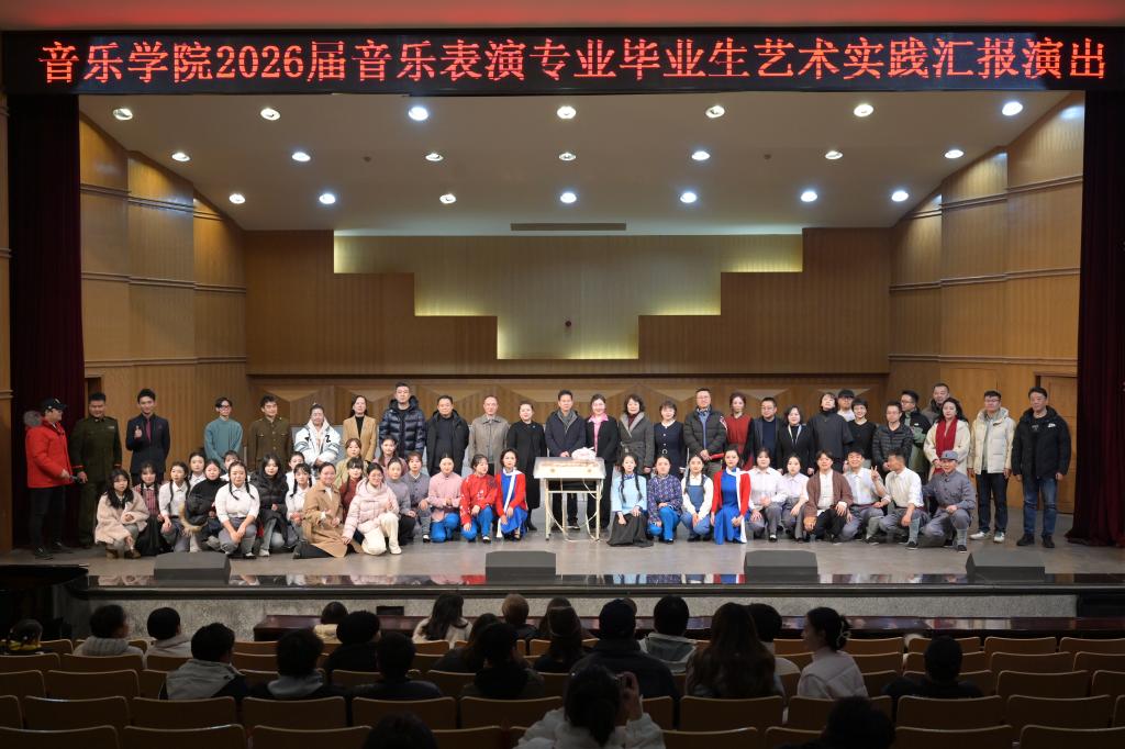 12月25日“赓续红色血脉 传承红色基因”——2026届音乐表演专业毕业生艺术实践汇报演出在学校音乐厅举行。演出由音乐学院主办、甘肃省歌剧院承办甘肃省歌剧院院长薛鹏新、副院长李泱良,音乐学院负责人及师生代表共同观看了演出。