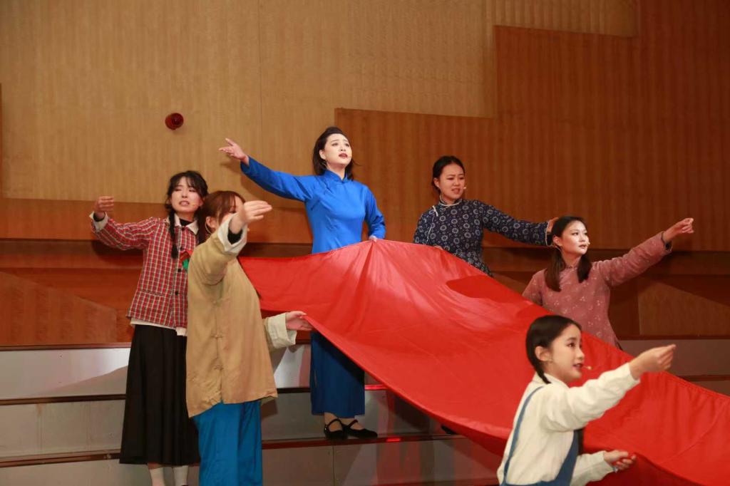 演出在古筝重奏《盛世国乐》《象王行》的恢弘旋律中拉开序幕。随后,情景合唱《正义必胜》以朗诵与合唱相结合的形式,表达了铭记历史、珍爱和平的深刻主题。《延安颂》《游击队之歌》《地道战》等经典歌曲联唱,唤起了观众对革命岁月的集体记忆。民族歌剧《党的女儿》《江姐》《沂蒙山》等选段精彩上演,生动塑造了革命先辈的光辉形象,展现了崇高的家国情怀。演出在合唱《城南送别》的悠扬歌声中圆满落幕。