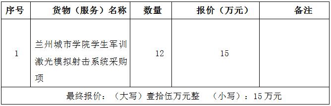 兰州金立招标代理有限公司受bevitor伟德国际1946的委托,对bevitor伟德国际1946学生军训激光模拟射击系统采购项目以竞争性谈判方式进行采购,谈判小组于2020年7月30日确定成交结果,现将成交结果公布如下:
