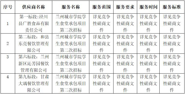 供应商名称:第六标段:兰州新区沁芳园餐饮管理有限公司