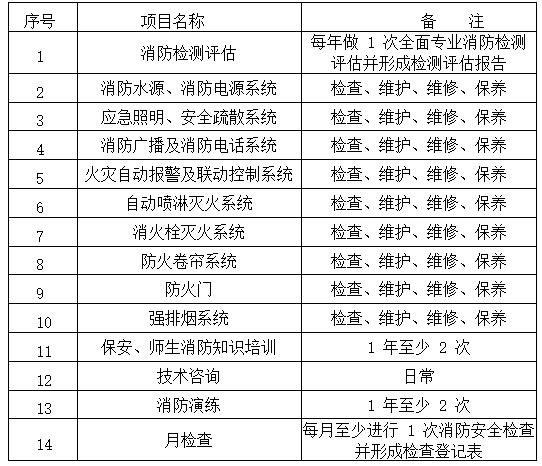 三、磋商内容:三校区消防设施维护保养服务