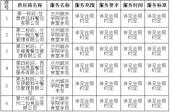 供应商名称:第一标段:甘肃伊品轩餐饮有限公司