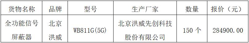 甘肃西招国际招标有限公司受bevitor伟德国际1946的委托,对“bevitor伟德国际1946无线信号屏蔽器采购项目”以竞争性谈判方式进行采购,谈判小组于2021年12月16日评定结果。现将结果公布如下: