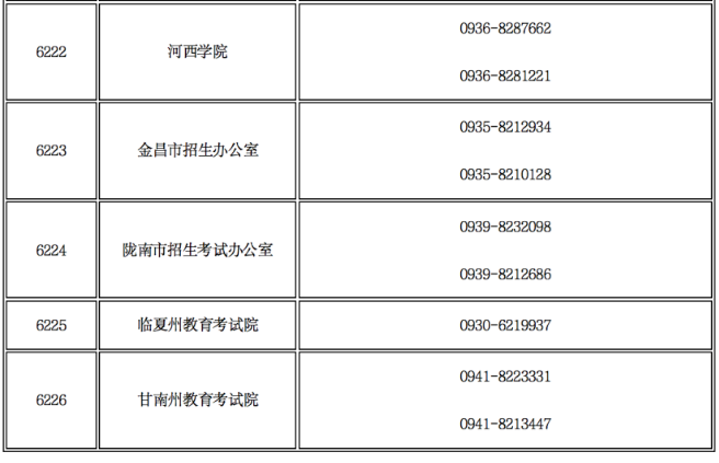 附件:甘肃省2023年全国硕士研究生招生考试各报考点联系电话
