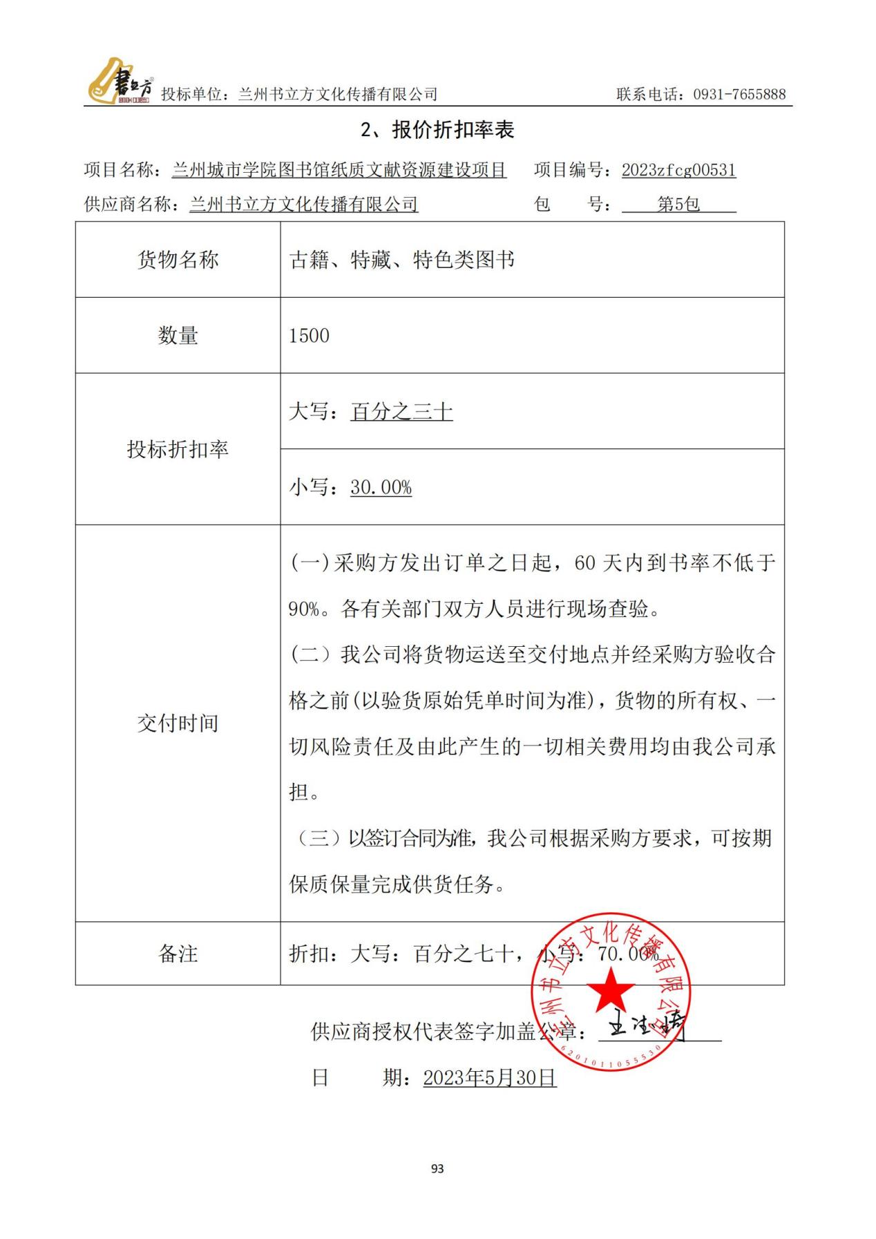 第一包:北京百万庄图书大厦有限公司,中标折扣率:30%;第二包:甘肃纸中城邦书业有限公司,中标折扣率:30%;第三包:湖北三新文化传媒有限公司,中标折扣率:30%;第四包:北京人天书店集团股份有限公司,中标折扣率:30%;第五包:兰州书立方文化传播有限公司,中标折扣率:30%。