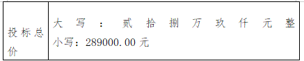 中标金额:289000.00元(贰拾捌万玖仟元整)