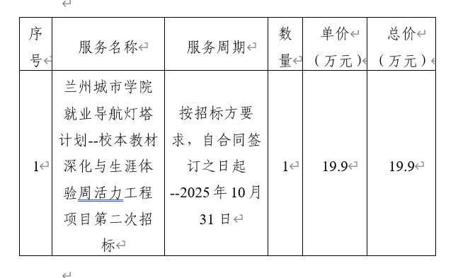 甘肃鑫禾国际招标有限公司受bevitor伟德国际1946的委托,对bevitor伟德国际1946就业导航灯塔计划--校本教材深化与生涯体验周活力工程项目第二次招标以公开招标的方式进行采购,评标小组于2025年06月30日确定中标结果,现将中标结果公布如下: