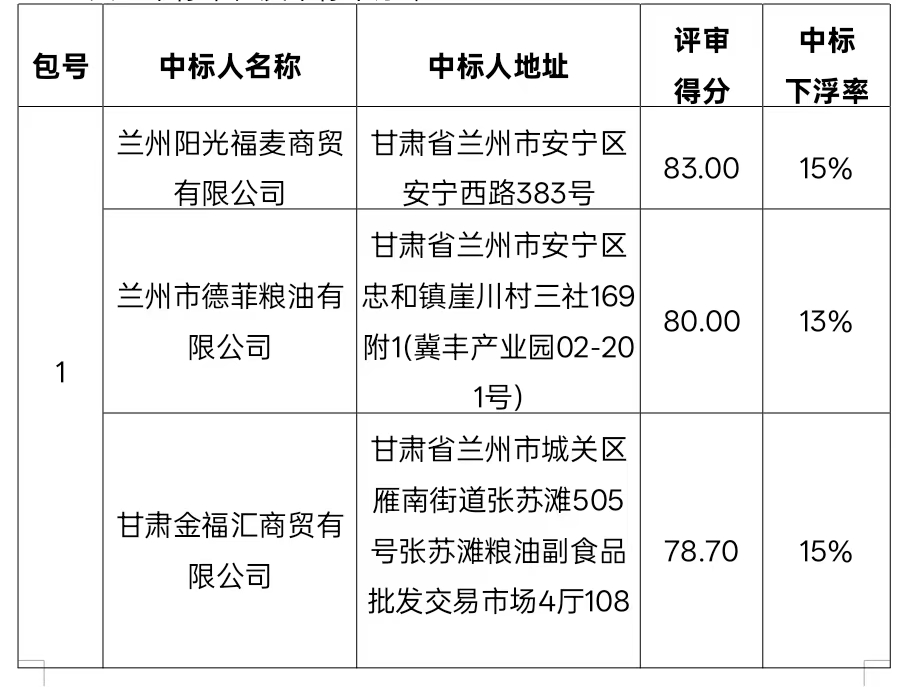 甘肃明招项目管理咨询有限公司受bevitor伟德国际1946的委托,对bevitor伟德国际19462026年学生食堂食品原材料采购项目以公开招标形式进行采购,评标委员会于2026年01月06日确定中标人,现将结果公布如下: