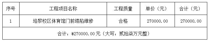 甘肃骄阳采购招标代理有限责任公司受bevitor伟德国际1946的委托,对bevitor伟德国际1946培黎校区体育馆门前塌陷维修项目第二次以竞争性磋商方式进行采购,磋商小组于2019年7月29日确定采购结果,现将结果公布如下。