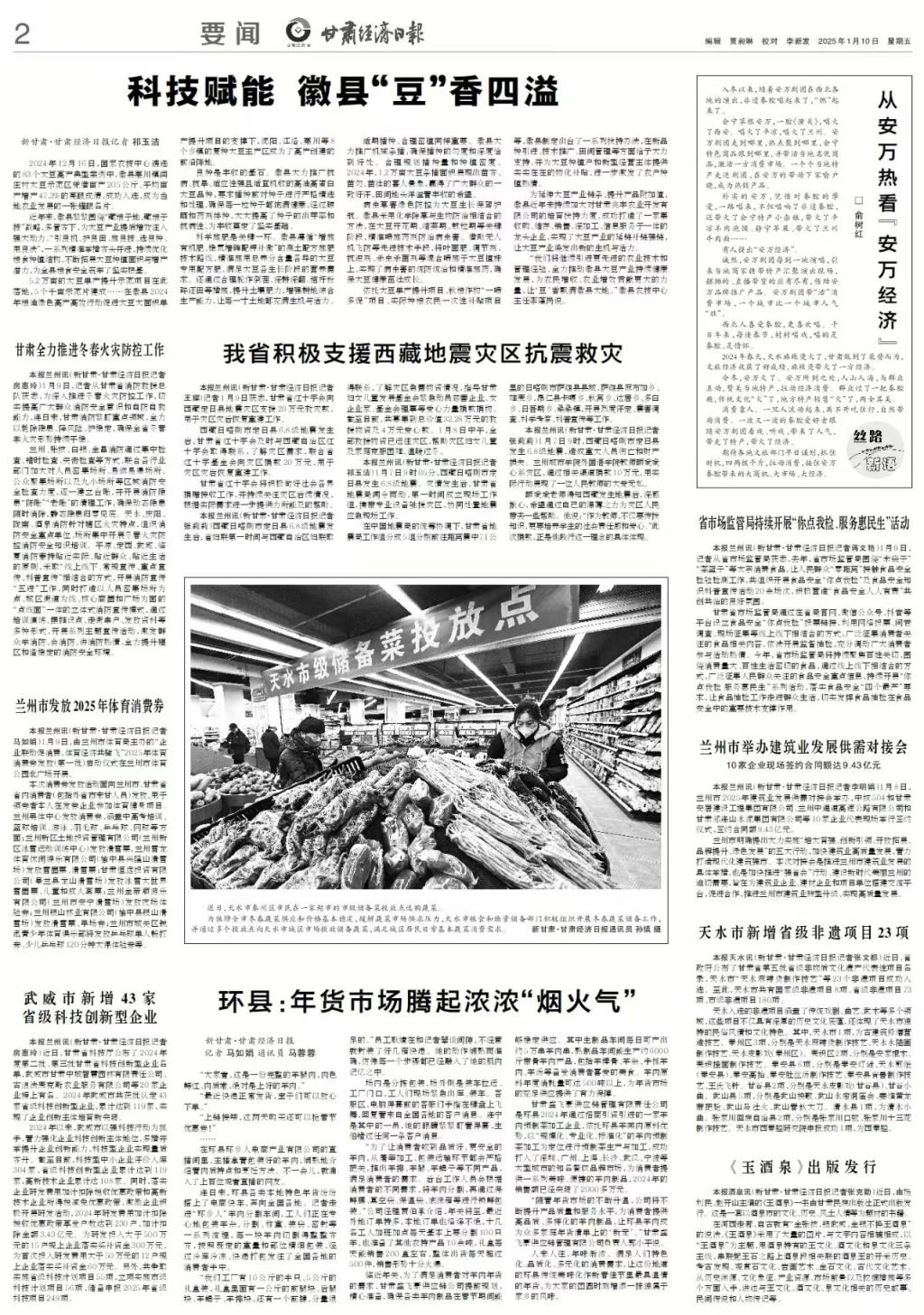 【甘肃经济日报】我省积极支援西藏地震灾区抗震救灾