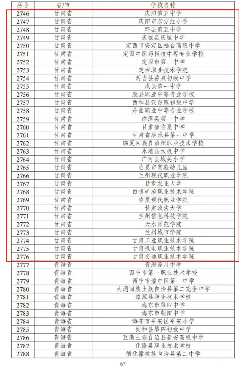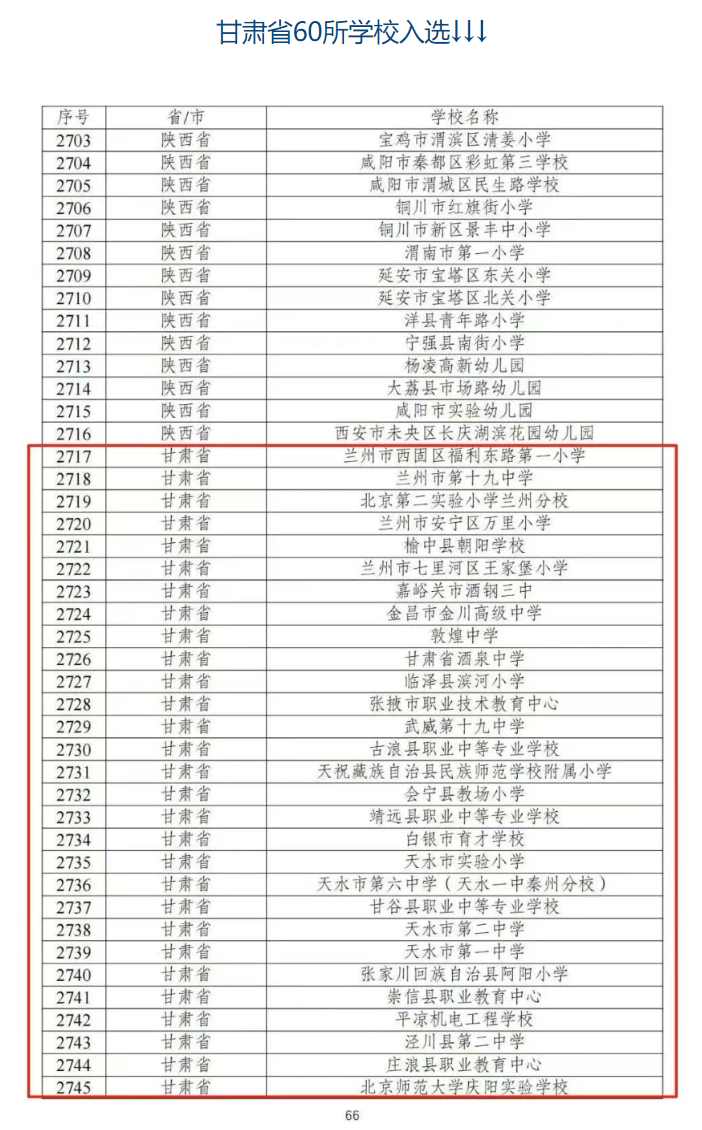 【甘肃省教育厅】甘肃60所学校入选!
