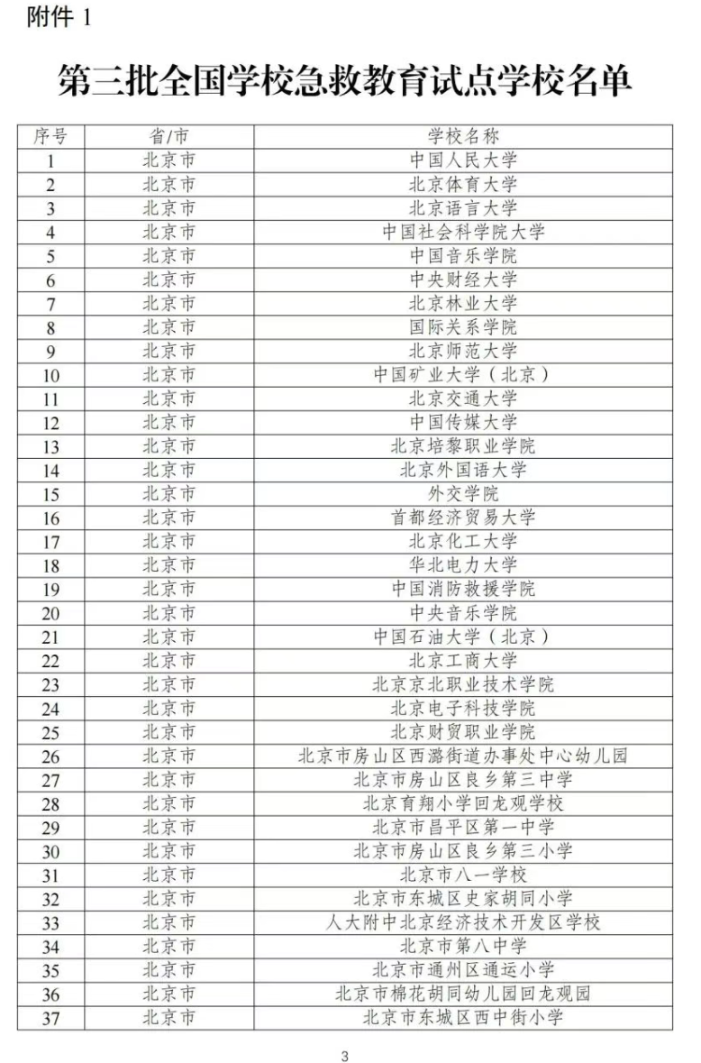 《通知》一并发布的《第三批全国学校急救教育试点工作指南》,以提升学生健康素养为核心,以普及急救知识和技能为重点,以提升校园应急救护能力为目标,推动在校园内配备急救和急救教育设施设备,加强师生急救教育,积极开展志愿服务,探索和积累可复制、可推广的学校急救教育经验做法,完善学校急救教育育人体系,引领学校急救教育发展新方向。