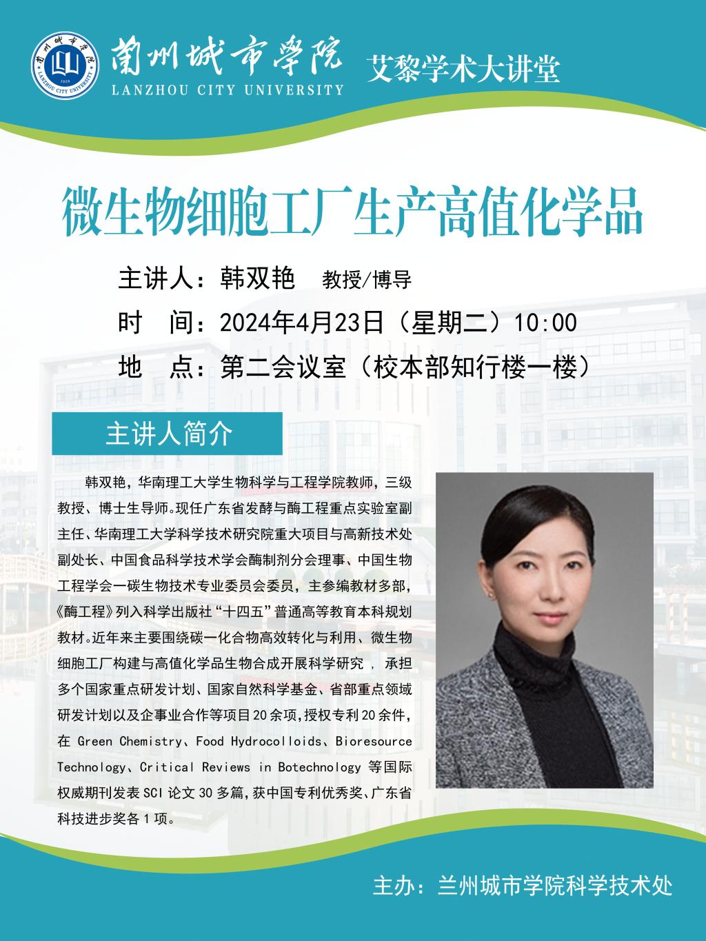 应科学技术处邀请,华南理工大学教授韩双艳将来伟德作学术报告。具体事宜公告如下: