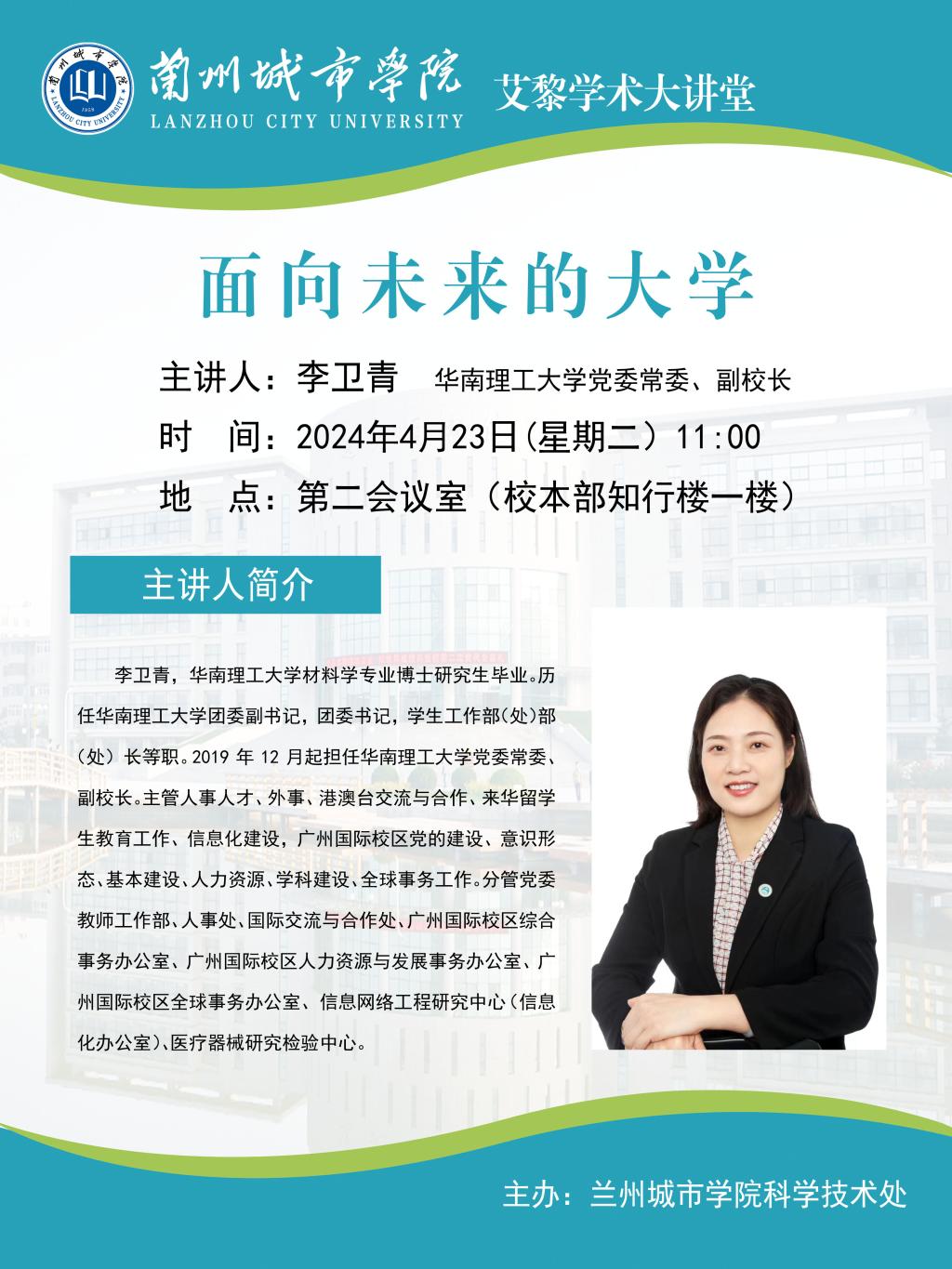 应科学技术处邀请,华南理工大学党委常委、副校长李卫青将来伟德作学术报告。具体事宜公告如下:
