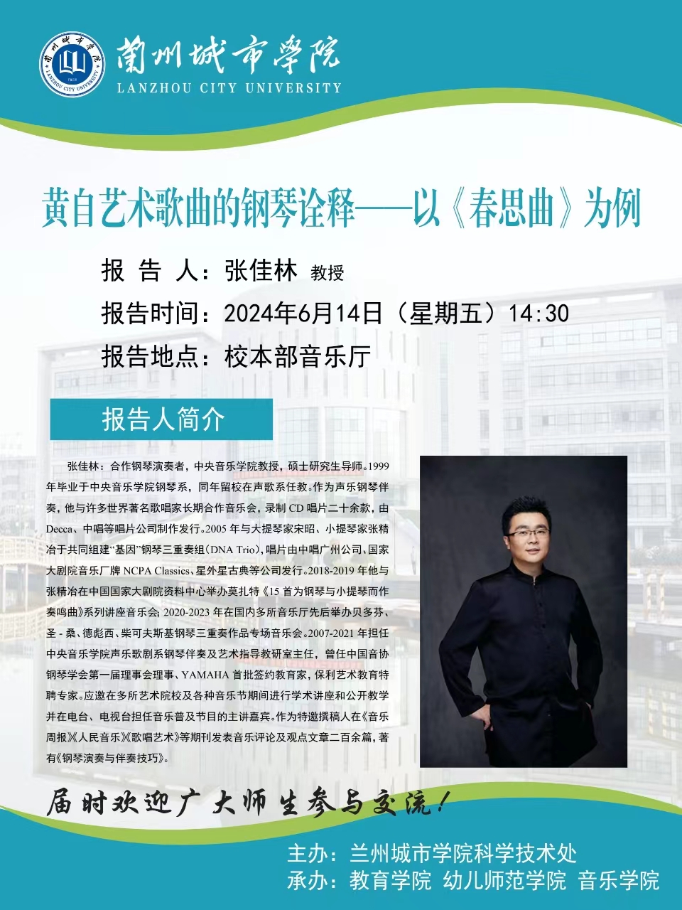 应科学技术处和团委联合邀请,中央音乐学院张佳林教授将来伟德作学术报告。具体事宜公告如下: