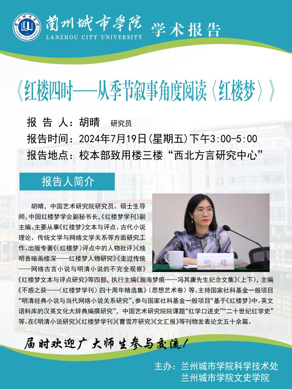 报告题目:《红楼四时——从季节叙事角度阅读<红楼梦>》