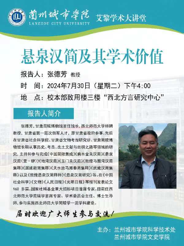 应科学技术处和文史学院联合邀请,西北师范大学张德芳教授将来伟德作学术报告。具体事宜公告如下: