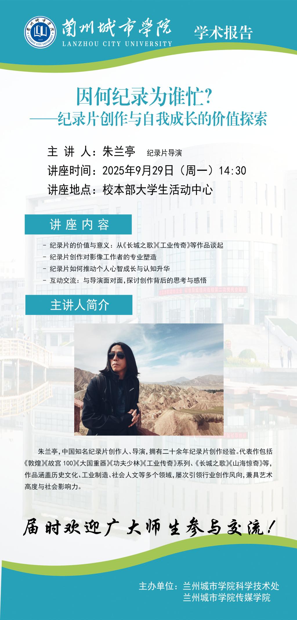 应科学技术处和传媒学院联合邀请,纪录片导演朱兰亭将来伟德作学术报告。具体事宜公告如下: