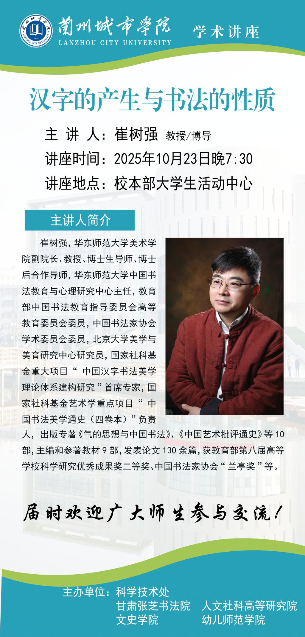 崔树强,华东师范大学美术学院副院长、教授、博士生导师、博士后合作导师,华东师范大学中国书法教育与心理研究中心主任,教育部首届中国书法教育指导委员会高等教育委员会委员,中国书法家协会第七届教育委员会委员、第八届学术委员会委员,北京大学美学与美育研究中心研究员,上海市书法家协会理事兼教育与交流委员会秘书长,上海市文艺评论家协会理事,主要从事书法教学、创作与研究工作,研究方向为书法美学和书法史论等,国家社科基金重大项目“中国汉字书法美学理论体系建构研究”首席专家,国家社科基金艺术学重点项目“中国书法美学通史(四卷本)”负责人,已出版专著《气的思想与中国书法》等10部,主编和参著《中国书法通识丛书》(4册)等9部,发表论文130余篇,学术成果获教育部第八届高等学校科学研究优秀成果奖二等奖、中国书法“兰亭奖”、重庆市第八次社会科学优秀成果三等奖、上海市书法家协会“学术奖”、“教育奖”等。