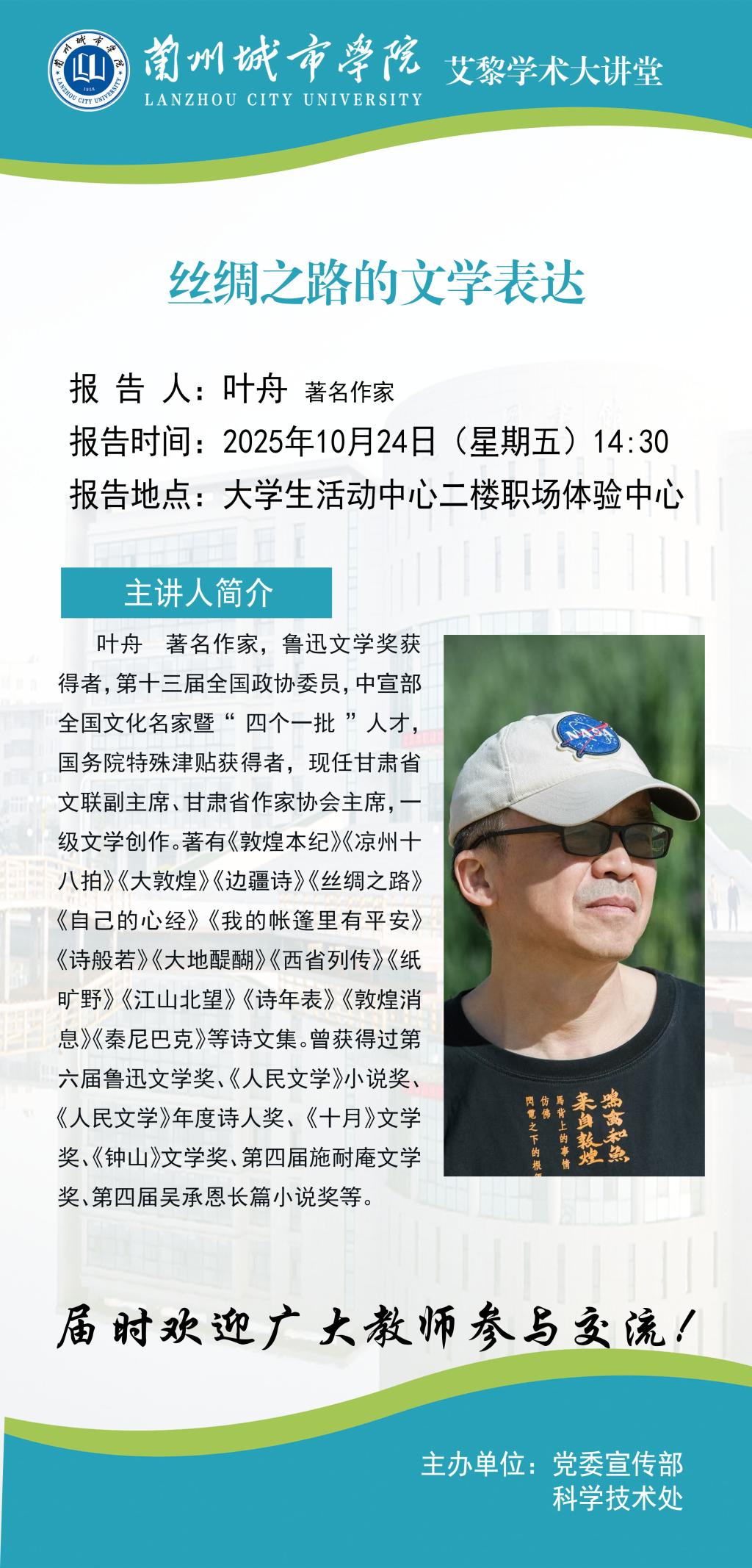应党委宣传部、科学技术处邀请,甘肃省文联副主席,省作协主席叶舟来伟德作学术报告。具体事宜公告如下: