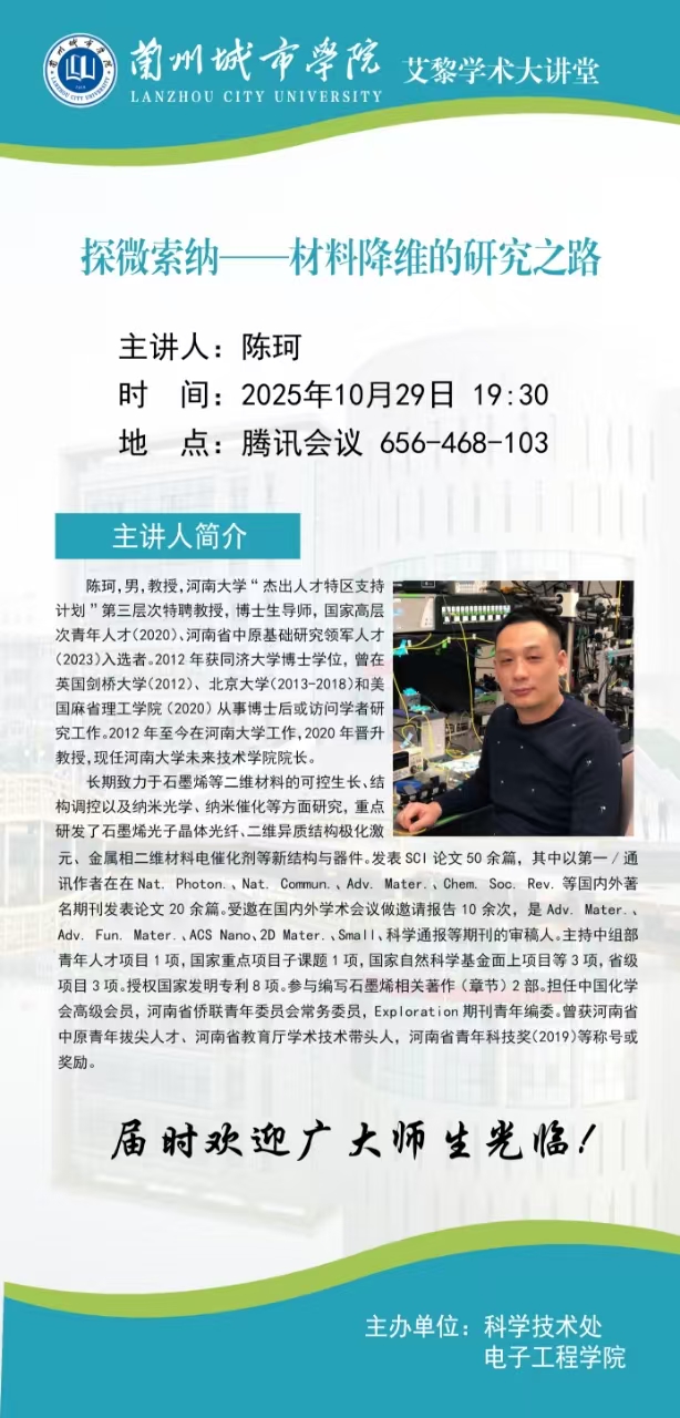 应科学技术处、电子工程学院联合邀请,河南大学陈珂教授来伟德作学术报告。具体事宜公布如下: