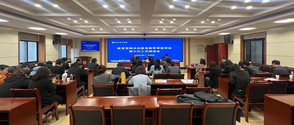 为全面总结深入推进师范专业认证整改,进一步推动教育教学审核评估迎评工作,10月25日下午,教育学院召开教育教学审核评估第六次工作推进会。会议由学院负责人主持,全体教职工参加会议。