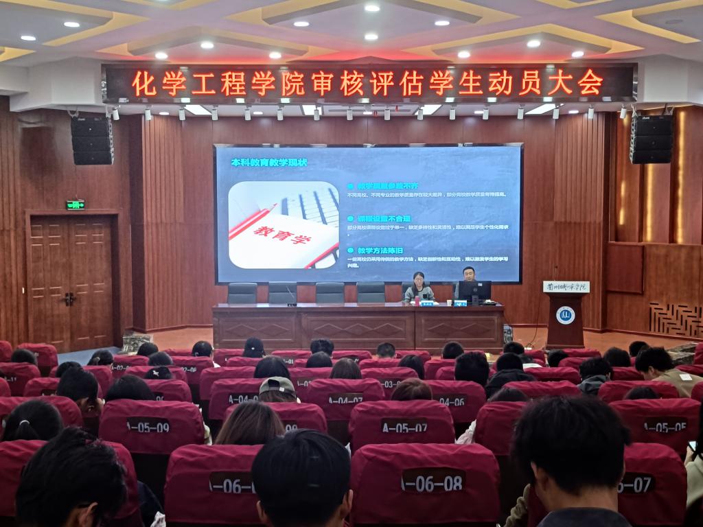 10月14日晚,化学工程学院在大学生活动中心举办本科教育教学审核评估学生培训动员会,学院负责人和2024级全体新生参加会议。