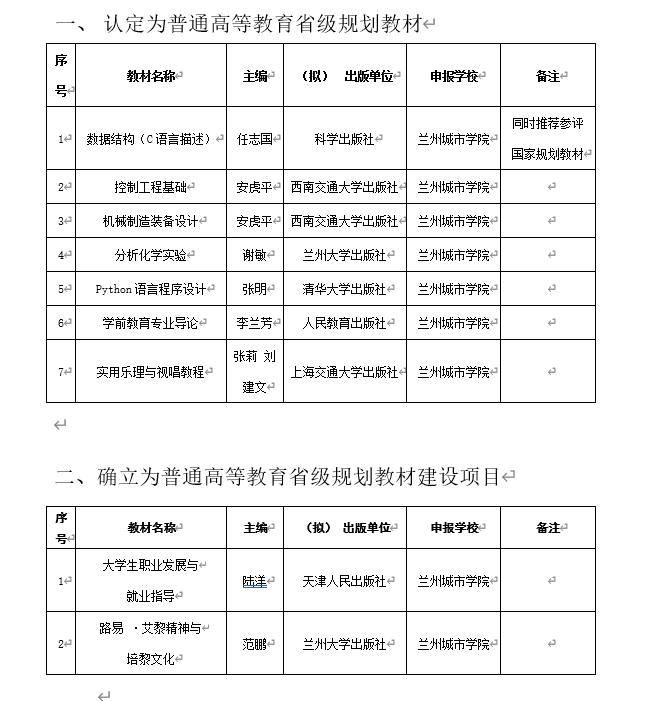 近日,甘肃省教育厅公布了首批“十四五”普通高等教育省级规划教材书目和教材建设项目名单,伟德《控制工程基础》等7部教材入选省级规划教材,其中《数据结构(C语言描述)》教材推荐参评国家级规划教材;《路易·艾黎精神与培黎文化》《大学生职业发展与就业指导》2个项目被确立为省级规划教材建设项目。