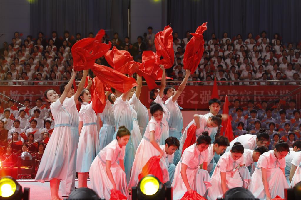 音乐学院师生歌伴舞《没有共产党就没有新中国》作品在第一篇章《星火燎原》作为开场节目进行表演,震撼全场。《没有共产党就没有新中国》展现了在历史长河中,中国曾在黑暗中徘徊,国家蒙难、文明蒙尘。是中国共产党,如一盏明灯,照亮了前行的道路;如一座灯塔,为中华民族的伟大复兴指引着方向。历史充分证明:没有共产党就没有新中国。同学们挥动手中的国旗,用最嘹亮的歌声与最热情的舞蹈,回顾党的光辉历程,唱响百年岁月荣光,深情讴歌党的丰功伟绩,唱出了兰城院师生对党的无限崇敬与感恩,对祖国的无限赞美与热爱。