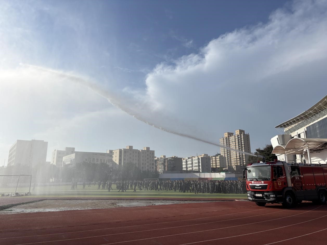 讲解最后,消防救援大队向师生们展示了最先进的消防救援车,开启自动操控水炮,部分学生代表参与了消防车操作训练。此次活动让 2024 级新生学到了丰富的消防安全知识,还提高了他们的实际操作能力和应急处置能力。学校将继续加强消防安全教育,为师生们创造一个安全、和谐的学习和生活环境。