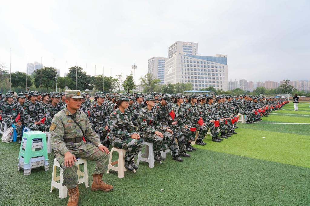 在即将迎来中华人民共和国成立75周年之际,歌声嘹亮、彩旗飘扬,全体与会师生共同唱响青春、歌唱祖国,2024级新生开学典礼暨军训动员大会在表白伟大祖国的歌声中圆满落下帷幕。